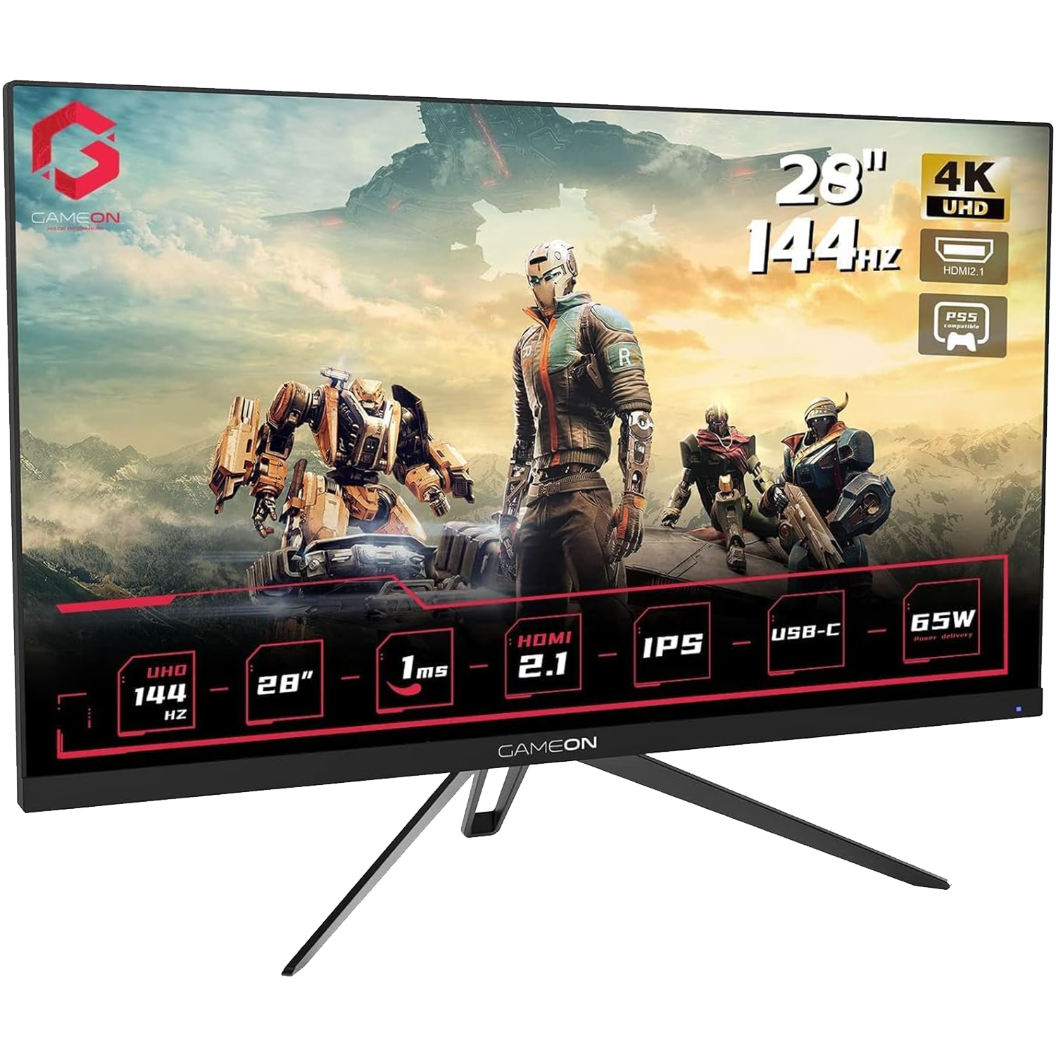 Gaming Excellence: GAMEON's 28-inch 4K monitor with 144Hz refresh rate and FreeSync Premium for tear-free gaming.