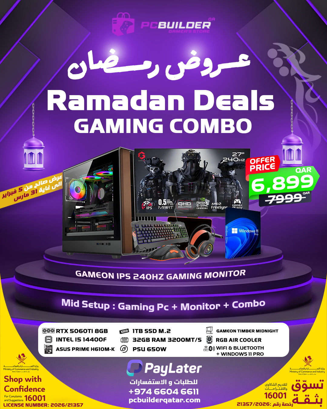 Upgrade your setup this Ramadan with a complete high-performance gaming bundle designed for smooth gameplay, ultra-fast visuals, and serious multitasking.