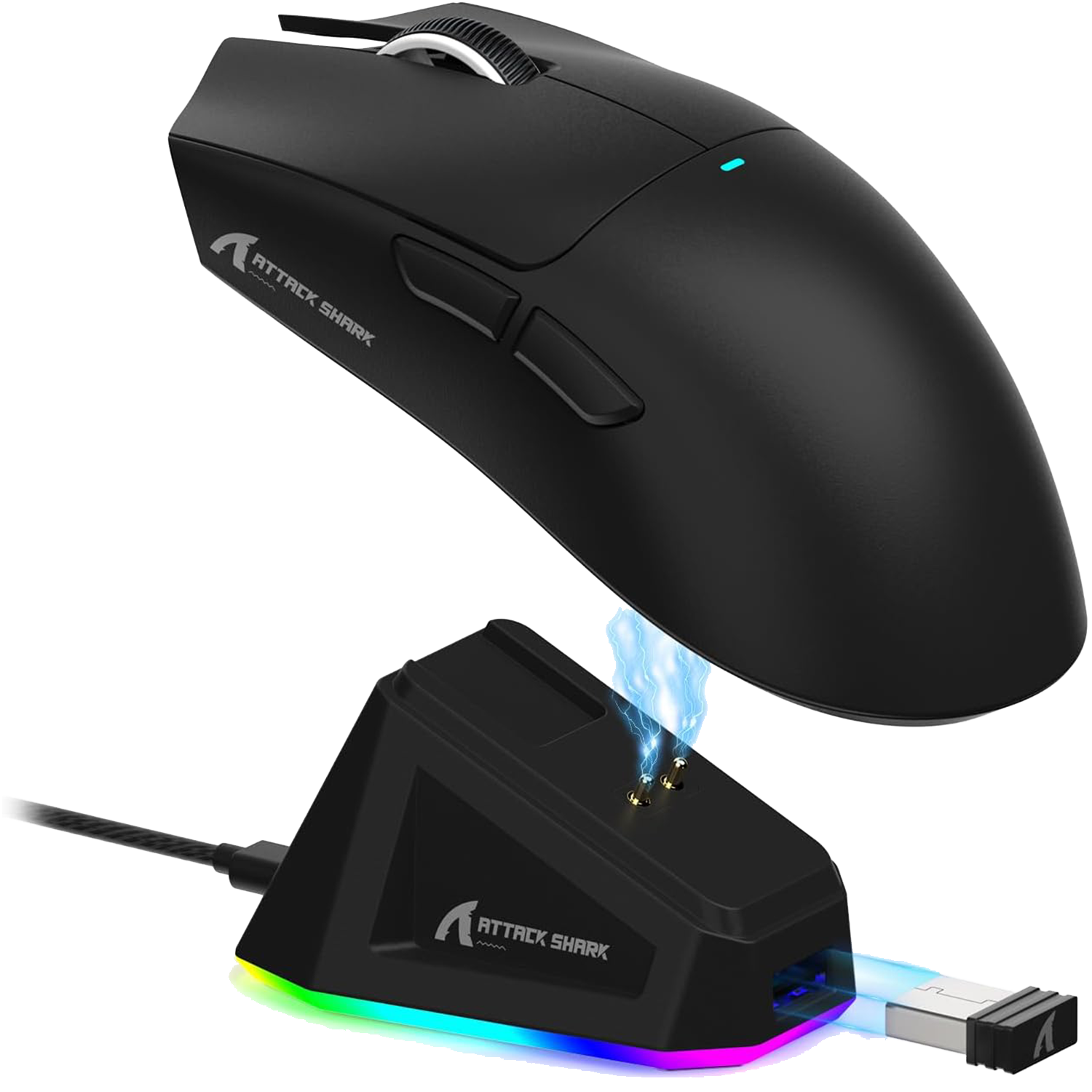 ATTACK SHARK X11 Wireless Gaming Mouse with Charging Dock Black - ماوس قيمنق وايرليس