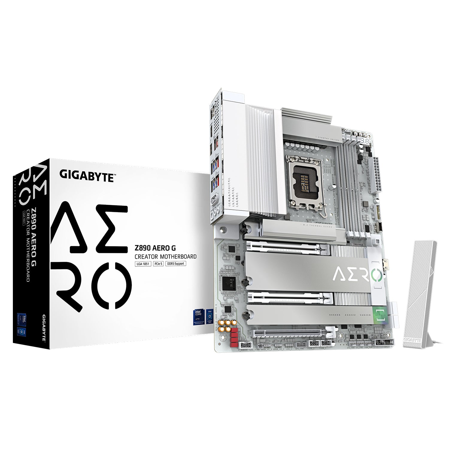 GIGABYTE Z890 Aero G LGA 1851 ATX Motherboard, Intel Z890 Express Chipset, 4x DDR5 DIMM Slots, Up to 256GB Max Memory, Wi-Fi 7 & BT5.4, 2x PCIe 5.0 x16 Slots, 5 x M.2 Slots, White | Z890-AERO-G