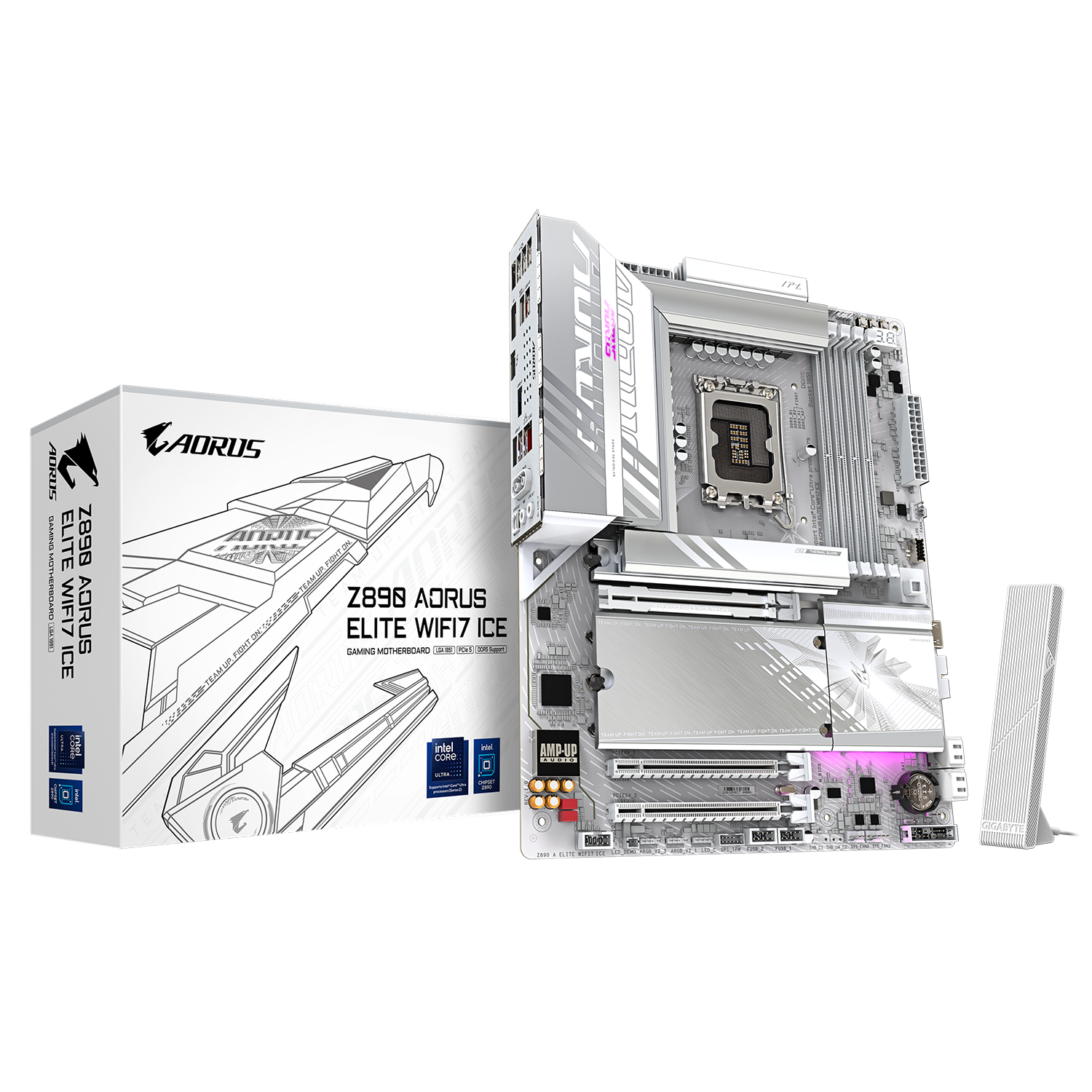 GIGABYTE Z890 AORUS Elite WIFI7 ICE Intel Core Ultra (Series 2) LGA 1851 Motherboard, ATX, DDR5, 4X M.2, PCIe 5.0, Thunderbolt 4, WIFI7, 2.5GbE LAN, EZ-Latch