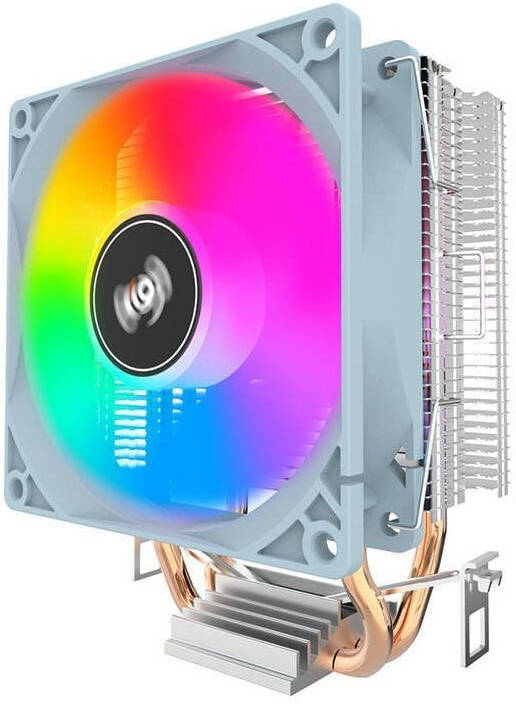Aigo ICE 200 Pro CPU Cooler, 1800 RPM Fan Speed, 42CFM Fan Air Flow, 21.05dB Noise Level, 7 Blade Fans, RGB Lighting, 2x Copper Heat Pipes, TDP 95W, PWM Control, Blue ICE 200 Pro