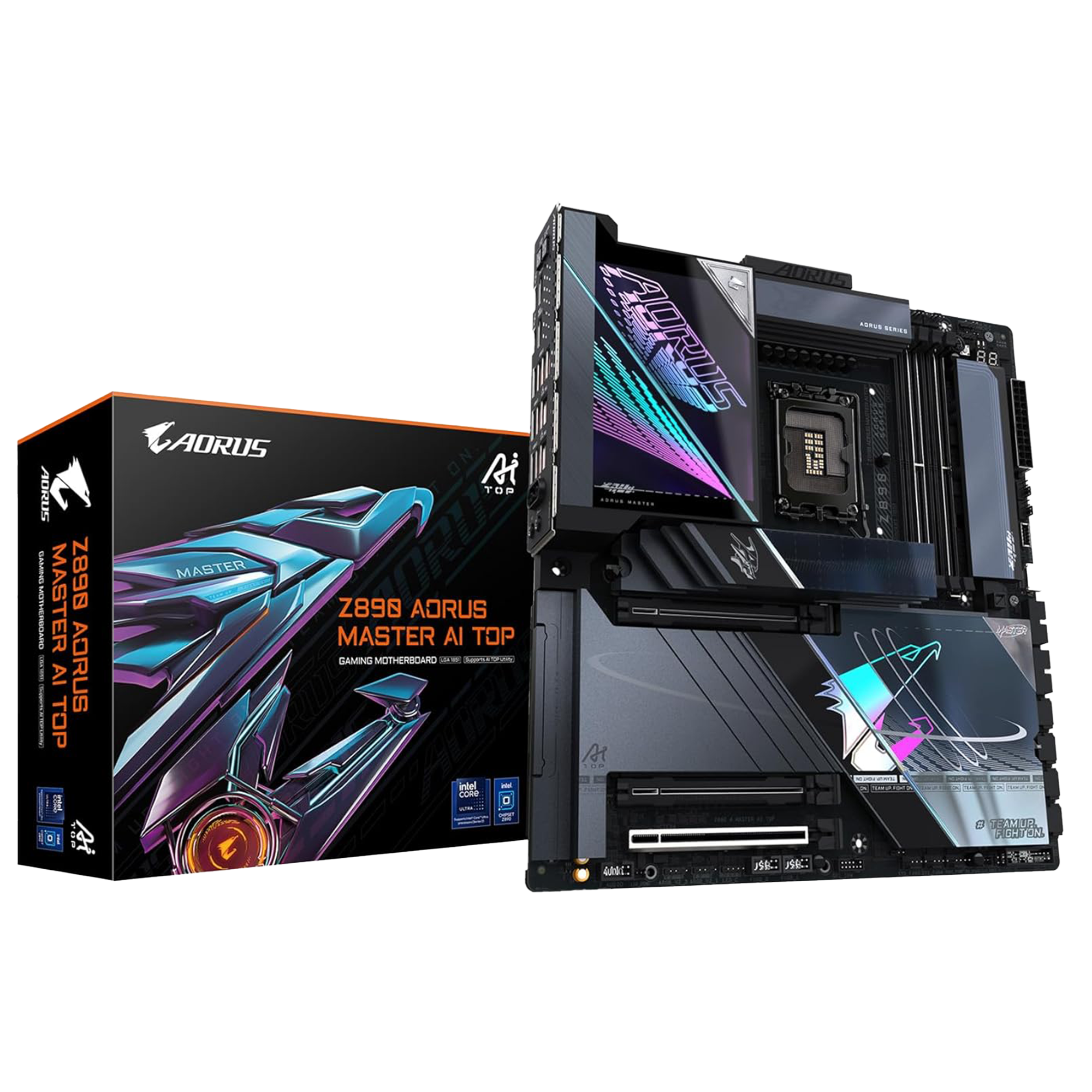 - GIGABYTE Z890 AORUS Master AI TOP Intel Core Ultra LGA 1851 Motherboard, E-ATX, DDR5, 4X M.2, PCIe 5.0, Thunderbolt 4, WIFI7, 10GbE LAN, EZ-Latch - اللوحة الأم GIGABYTE Z890 AORUS Master AI TOP Intel Core Ultra LGA 1851 Motherboard, E-ATX, DDR5, 4X M.2, PCIe 5.0, Thunderbolt 4, WIFI7, 10GbE LAN, EZ-Latch - اللوحة الأم