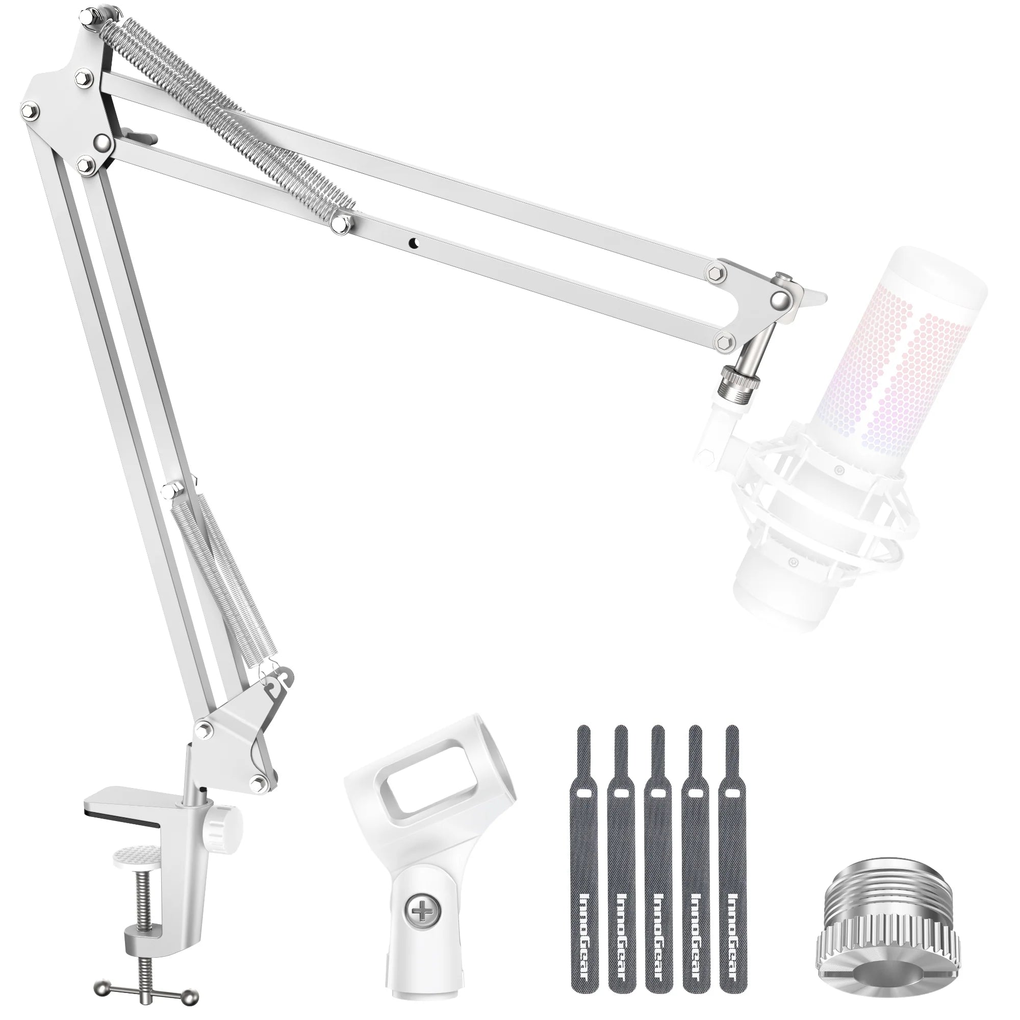 - InnoGear( MU01B ) WHITE Boom Arm Microphone Mic Stand for Blue Yeti HyperX QuadCast SoloCast Snowball Fifine Shure SM7B and other Mic - WHITE - ستاند للمايك InnoGear( MU01B ) WHITE Boom Arm Microphone Mic Stand for Blue Yeti HyperX QuadCast SoloCast Snowball Fifine Shure SM7B and other Mic - WHITE - ستاند للمايك