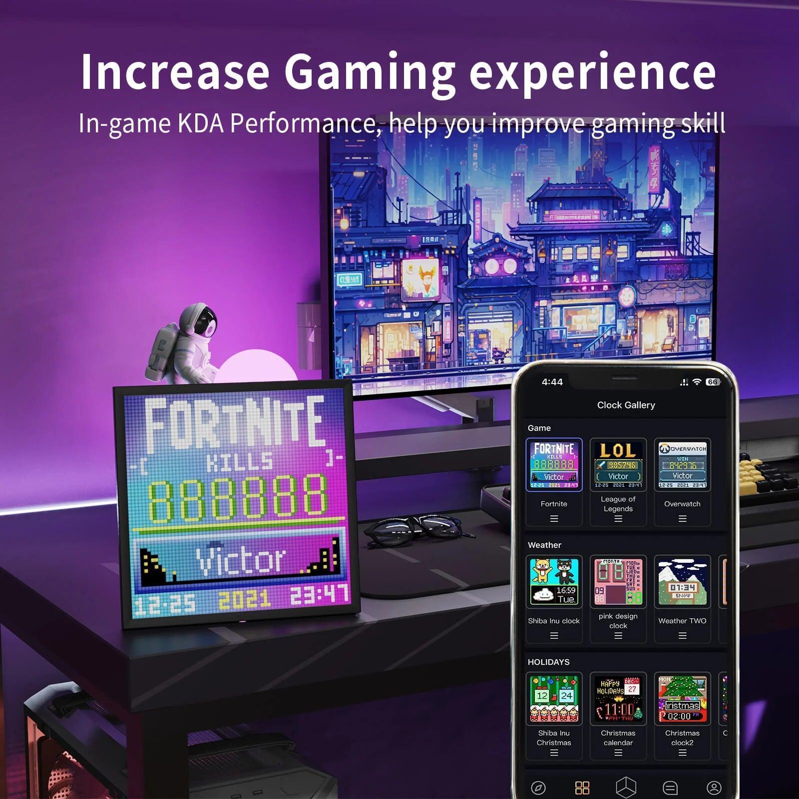 - 【Social Media Tracker & Game KDA】 Tracke your streaming account performance with the Pixoo-64 and celebrate every milestone with your audience. Pixoo-64 can display your game performance and game results so you can improve your skills to climb the leaderboard.