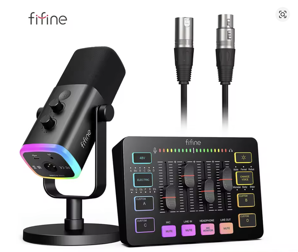 Fifine Audio Set|XLR Connection Upgrade-Ability:Elevate your audio with the FIFINE gaming audio set's XLR interface, compatible with high-quality mics for enhanced live streaming.