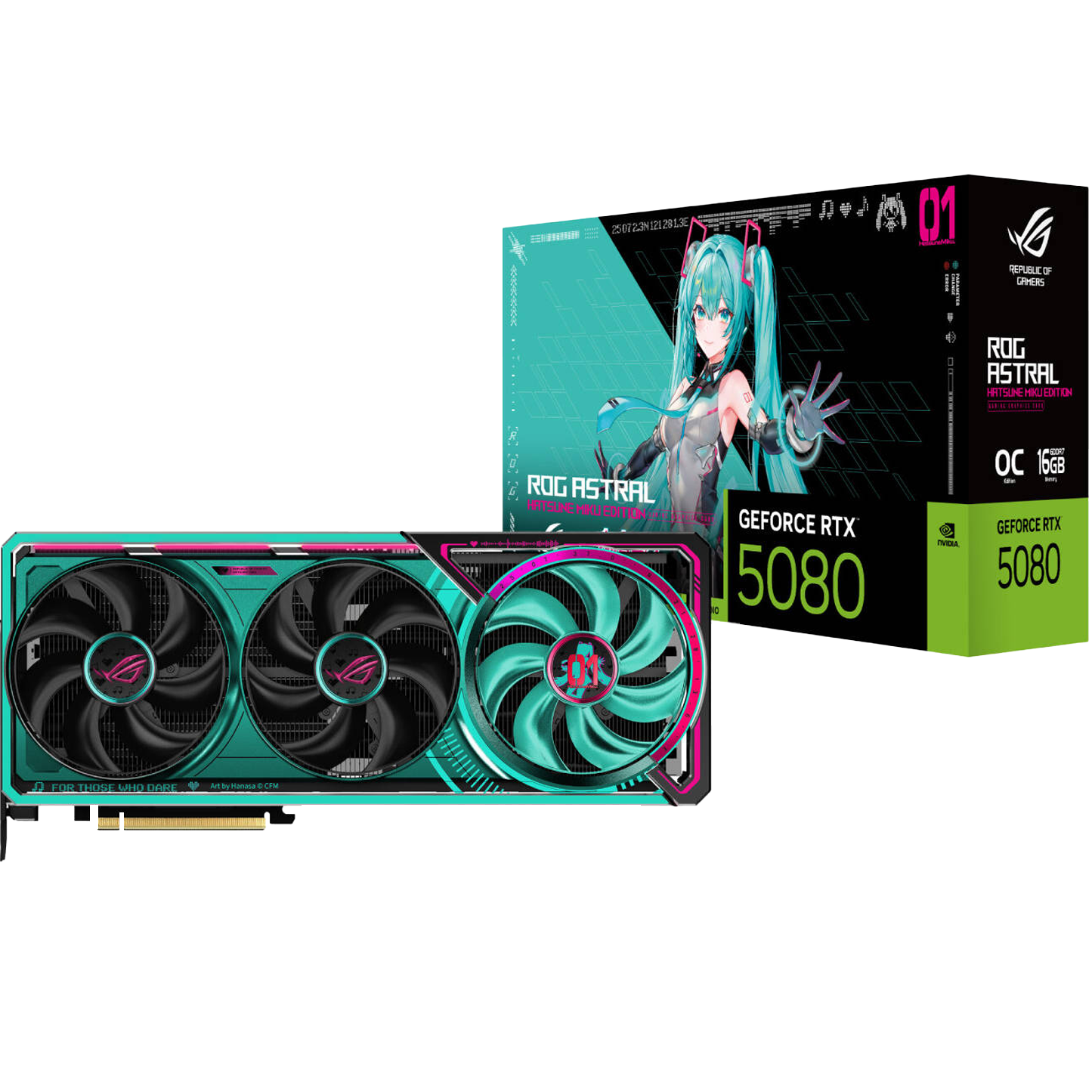 - ASUS ROG Astral GeForce RTX 5080 OC Hatsune Miku Edition Graphics Card, 16GB GDDR7 - كرت شاشة نسخه ميكو ASUS ROG Astral GeForce RTX 5080 OC Hatsune Miku Edition Graphics Card, 16GB GDDR7 - كرت شاشة نسخه ميكو