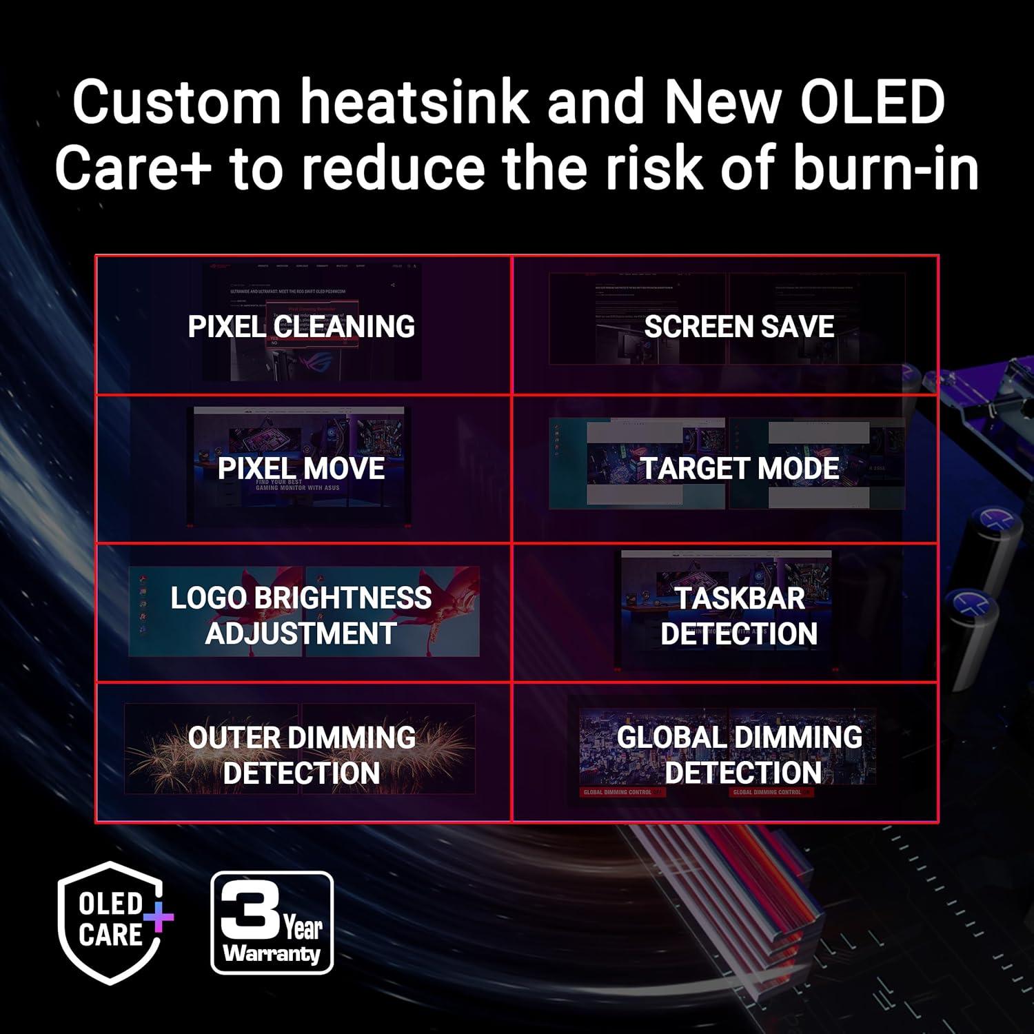 Highly efficient custom heatsink, advanced airflow design, and ASUS OLED Care+ functions to reduce the risk of burn-in