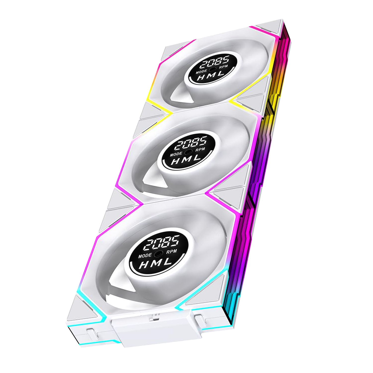JUNGLE LEOPARD Interstellar Digital Fan V4 120mm Case Fan White-3Pack, Computer Cooling PC ARGB CPU Cooler Daisy Chain Fan - مروحة