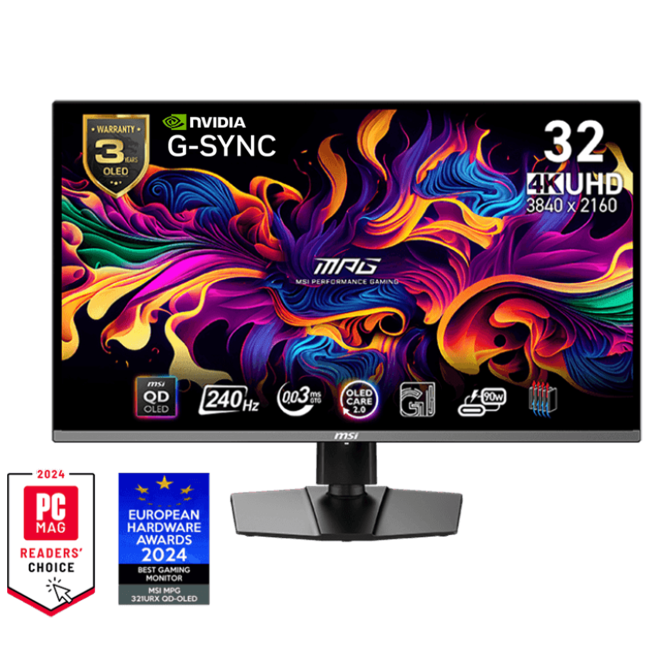 MSI MPG 321URX QD-OLED, 32" 4K UHD Quantum Dot OLED Gaming Monitor, 3840 x 2160, 0.03ms, 240Hz, True Black HDR 400, 90W USB Type C, HDMI, DP Port /Black