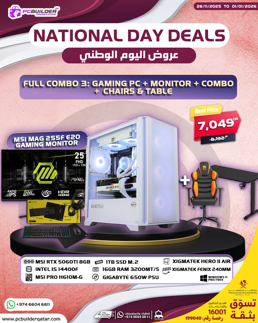 - NATIONAL DAY FULL COMBO 3 (GAMING PC + MONITOR + COMBO + CHAIRS And TABLE) - تجميعة اليوم الوطني NATIONAL DAY FULL COMBO 3 (GAMING PC + MONITOR + COMBO + CHAIRS And TABLE) - تجميعة اليوم الوطني