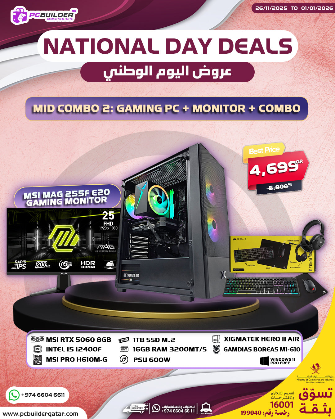 NATIONAL DAY MID COMBO 2 (GAMING PC + MONITOR + COMBO) - تجميعة اليوم الوطني