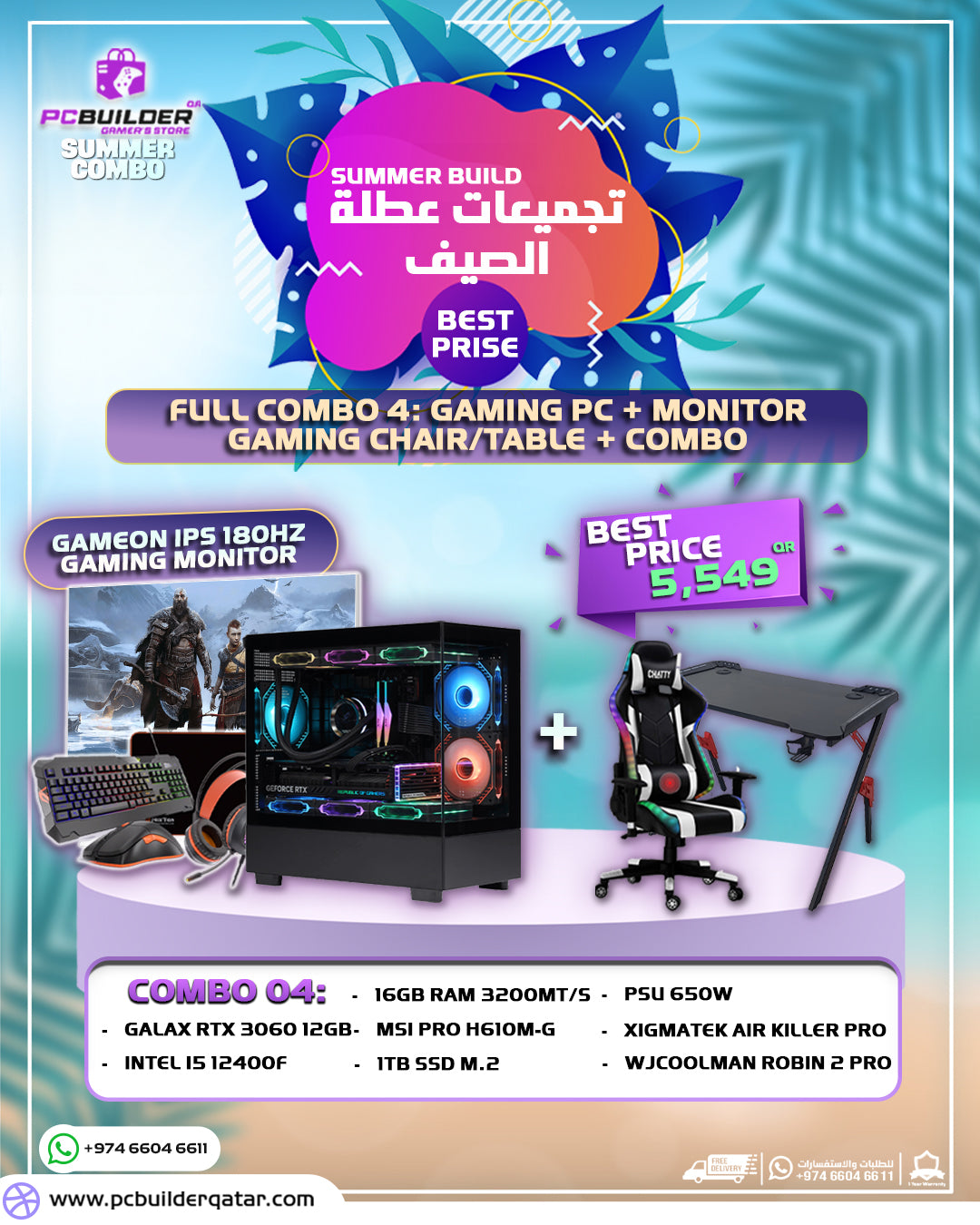 - SUMMER GAMING FULL SETUP COMBO 04 - GAMING PC + MONITOR + ACSSORIES - باقه الصيف SUMMER GAMING FULL SETUP COMBO 04 - GAMING PC + MONITOR + ACSSORIES - باقه الصيف