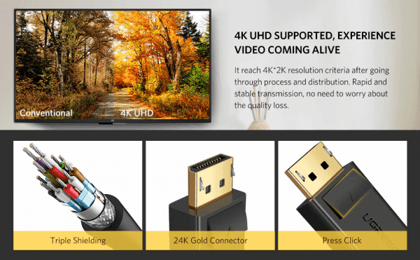 - Ugreen DisplayPort To DisplayPort 1.2 4K - 3m - Black - كابل Ugreen DisplayPort To DisplayPort 1.2 4K - 3m - Black - كابل