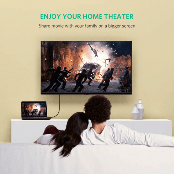 Connect devices with DP ports, such as laptops and graphics cards with external displays or TVs. The plug is securely inserted into the port with an additional button.